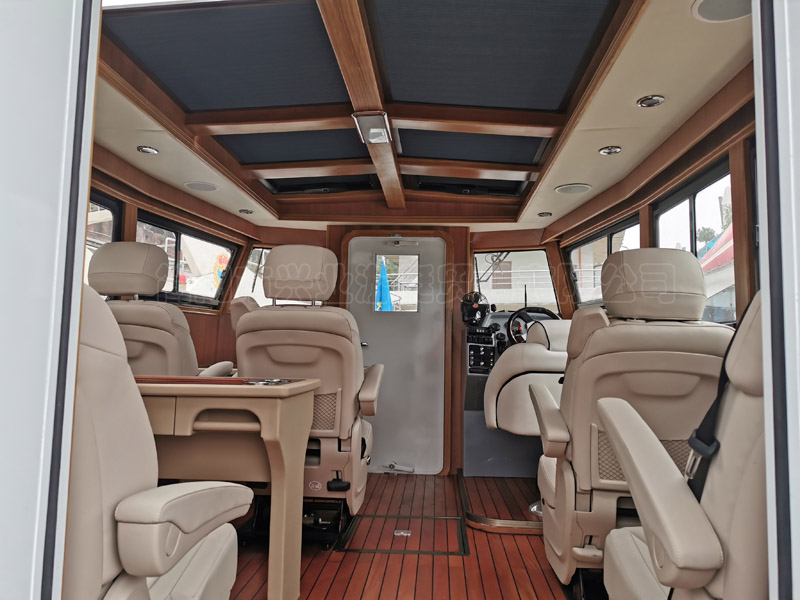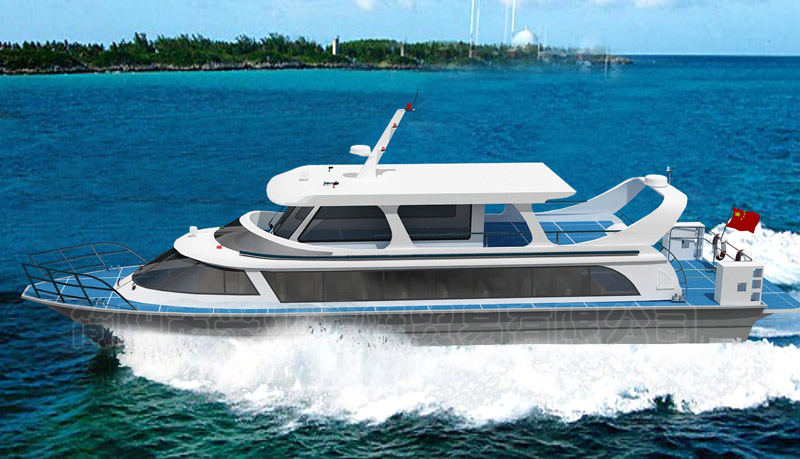 本艇為玻璃鋼與鋼質(zhì)復(fù)合船型。本船功能設(shè)施齊全、外形美觀、線性流暢、快速感強(qiáng)、內(nèi)部區(qū)域劃分合理,設(shè)計人性化,視覺通透性強(qiáng),舒適方便,設(shè)乘客觀光區(qū),便于乘客拍照及觀賞風(fēng)光。同時配備先進(jìn)的機(jī)電設(shè)備,船舶的技術(shù)性能優(yōu)良。本船型線采用舷內(nèi)外雙機(jī)型線型。首柱前傾。